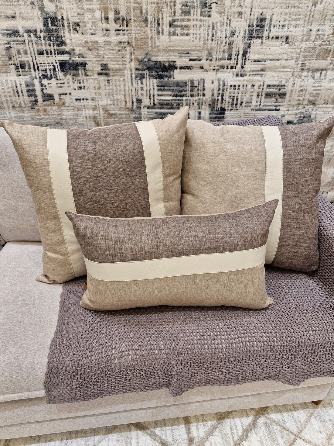 Kit Almofadas Trio Manu em Corino Bege 387| Três Peças