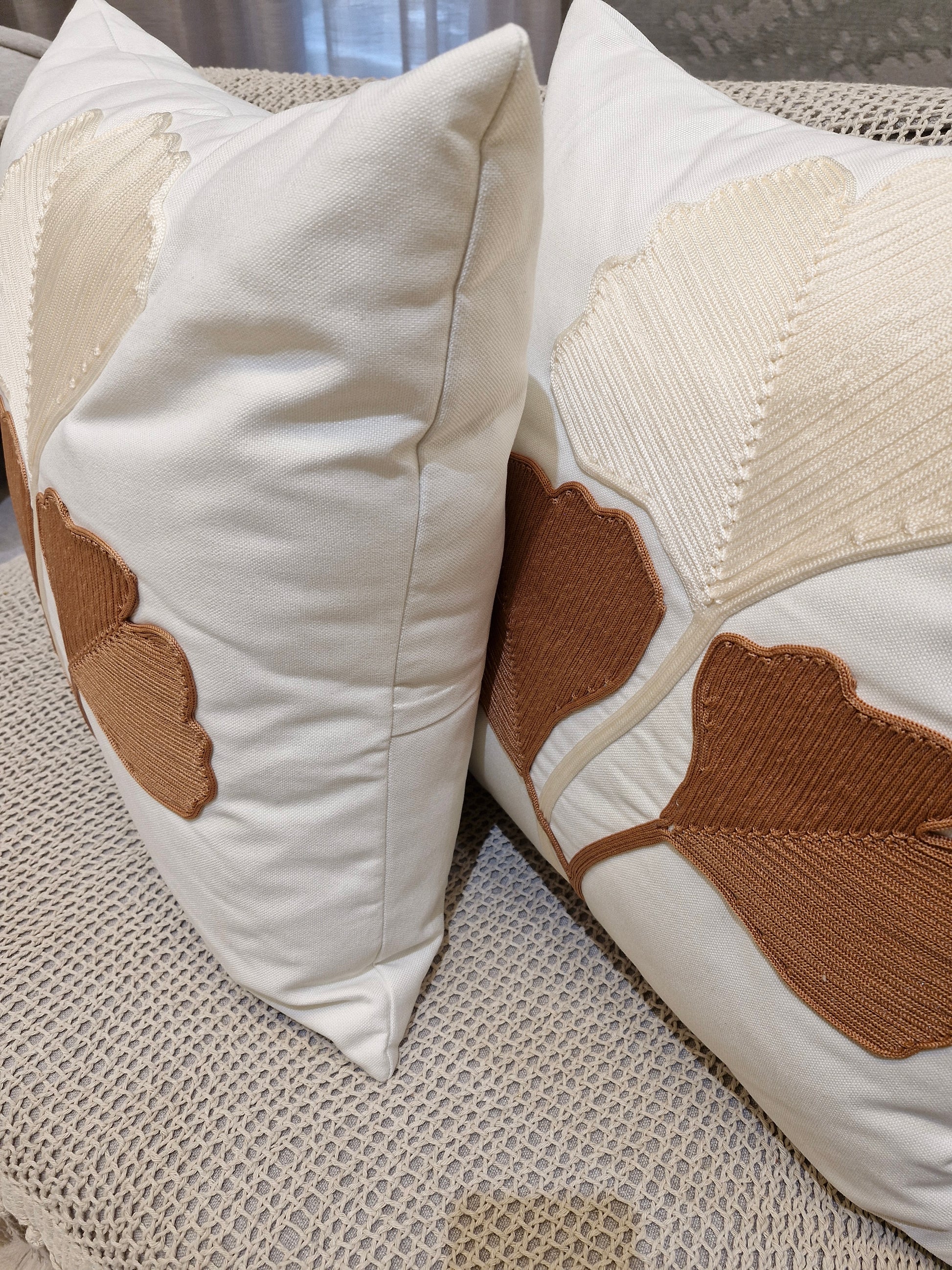 A Almofada Folhas Bordadas une o charme da natureza com o toque artesanal. Com aplicação de folhas em relevo nos tons off-white e caramelo, ela adiciona aconchego e sofisticação ao seu sofá, poltrona ou cama. Ideal para compor ambientes modernos, orgânicos ou neutros com estilo e delicadeza.
