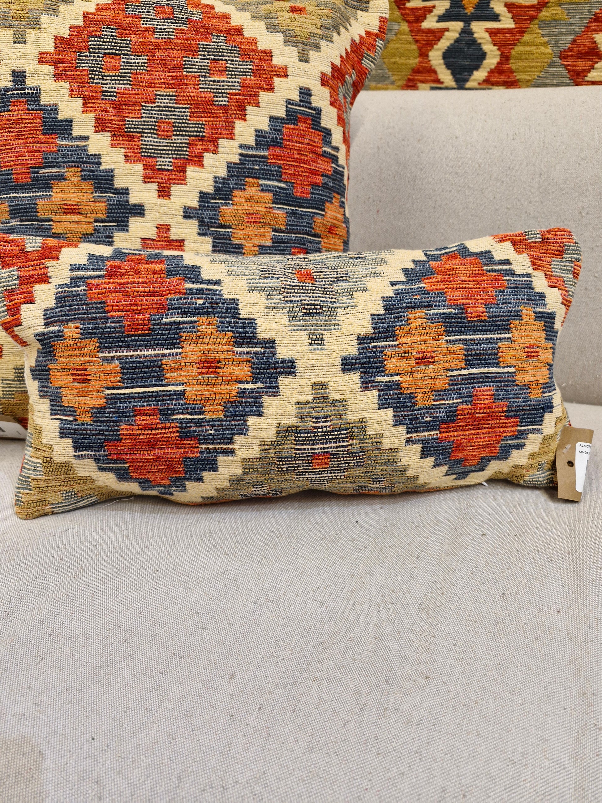 A Almofada Étnica Kilim é a escolha ideal para quem deseja transformar a decoração com um toque de cor, sofisticação e charme artesanal. Inspirada nos tradicionais padrões geométricos dos tapetes kilim, ela traz uma combinação harmoniosa de tons terrosos, azul, bege e mostarda, criando um visual aconchegante e cheio de personalidade.