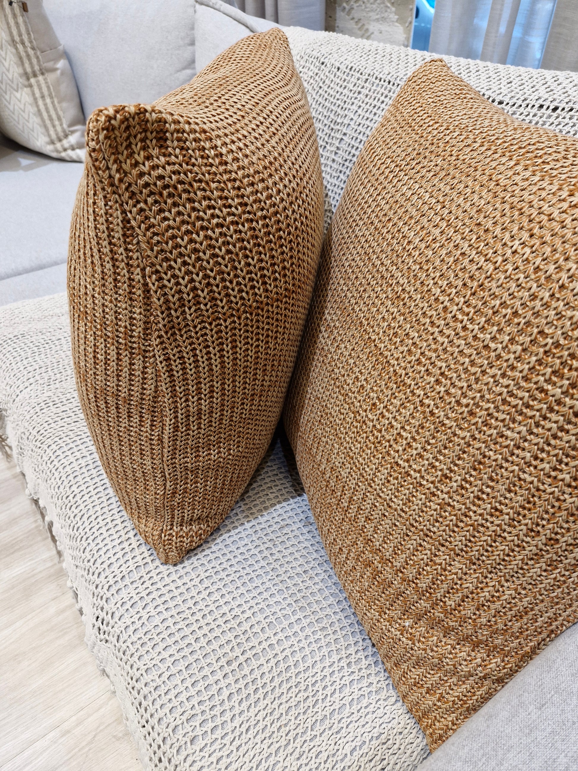 Almofada Decorativa Tricô Caramelo – Aconchego Natural para Sua Decoração