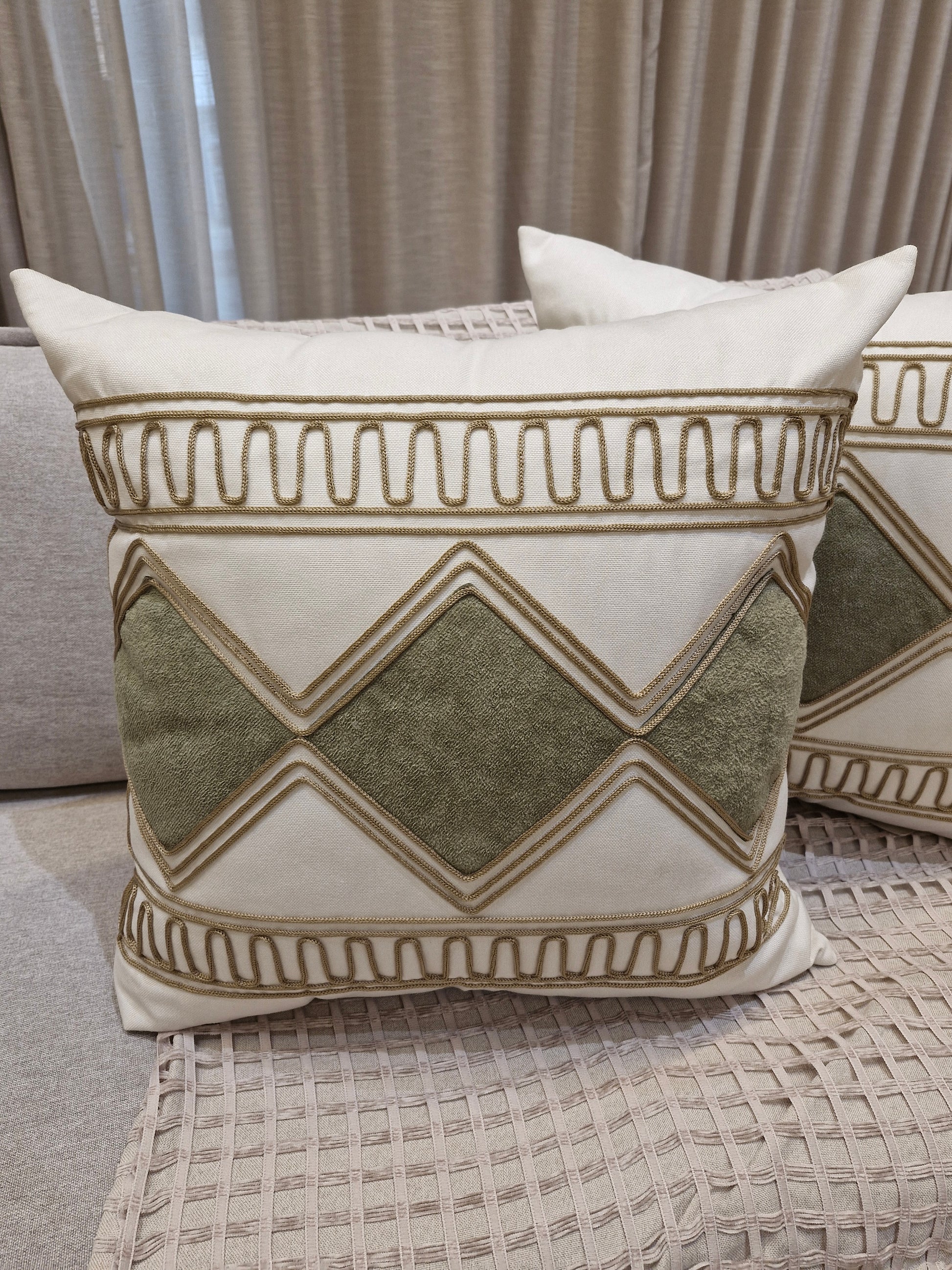 Almofada Especial Bege Bouclê Verde 03 55cmX55cm