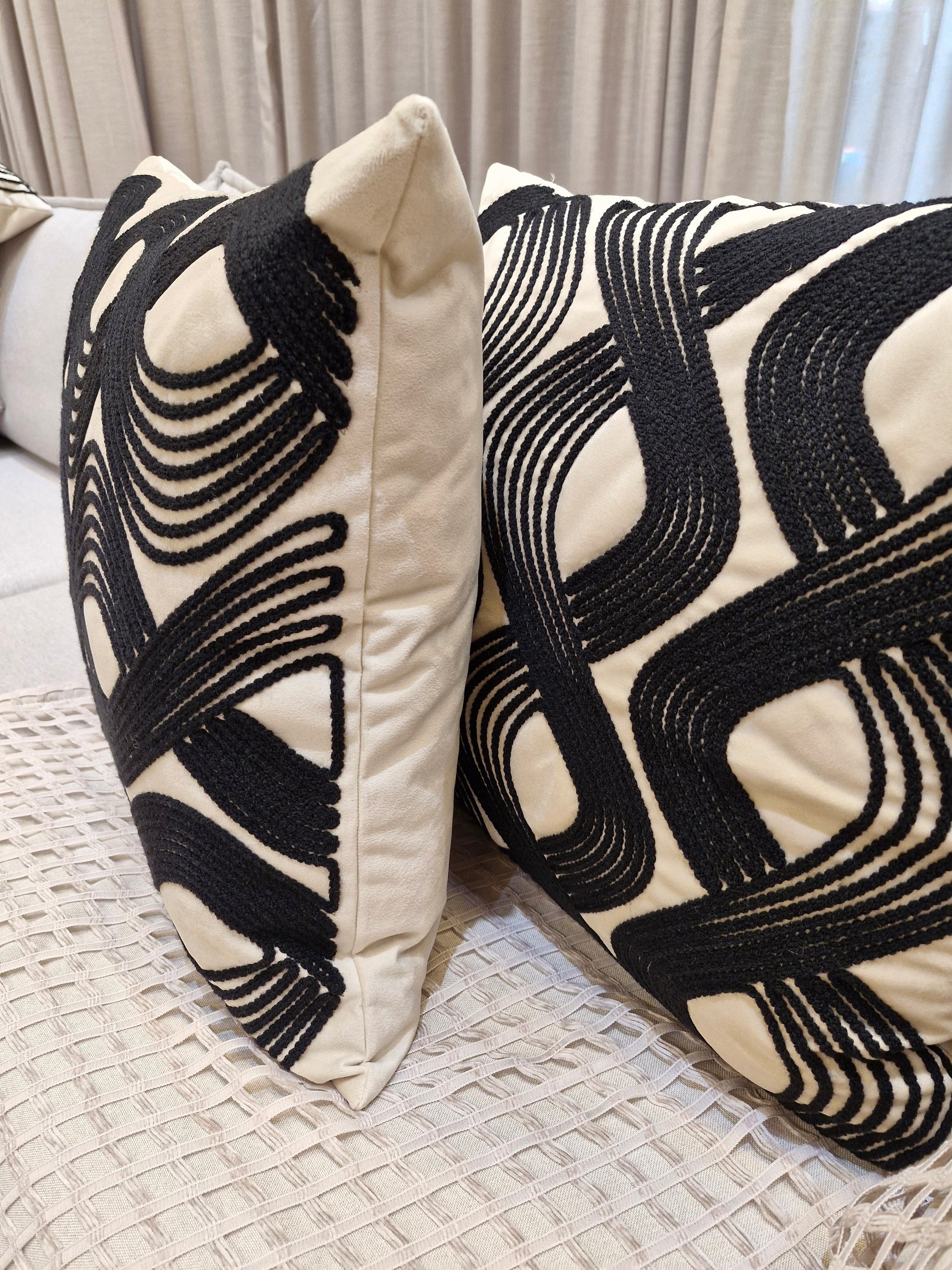 Almofada Linho Bordado Kilim Preto – Elegância Natural para seu Ambiente