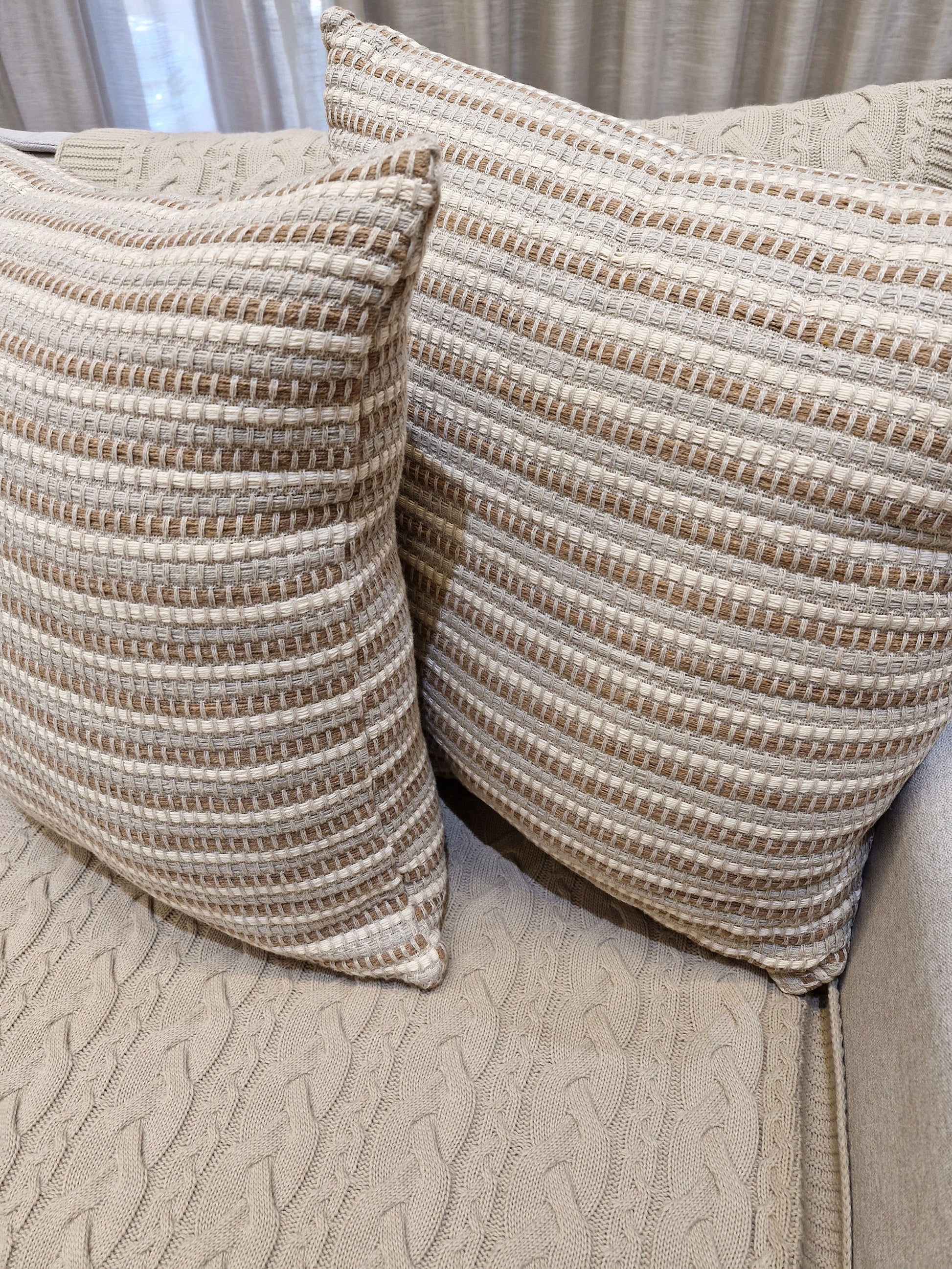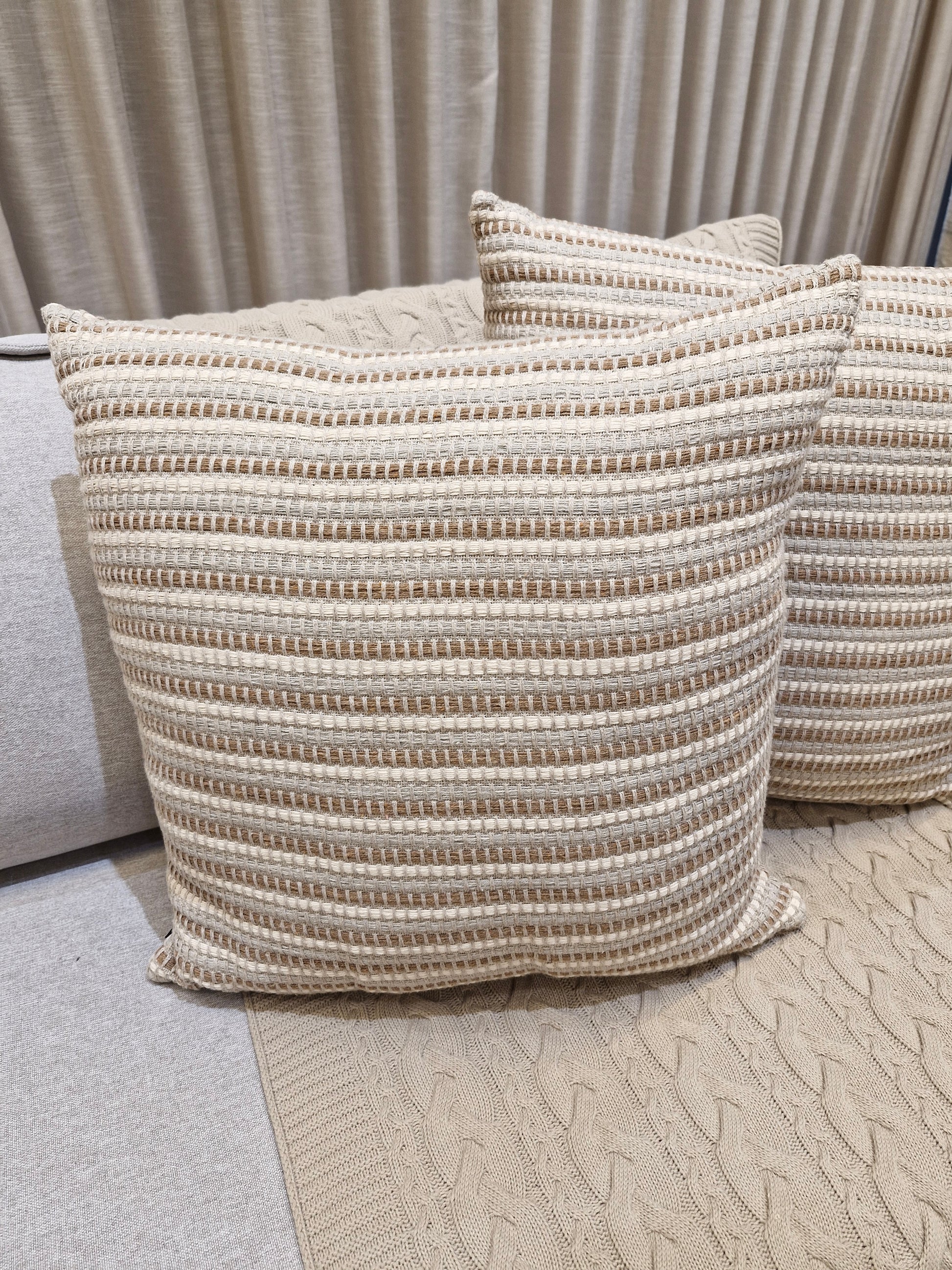 Almofada Trama Listras Bege – Aconchego Natural para Sua Decoração