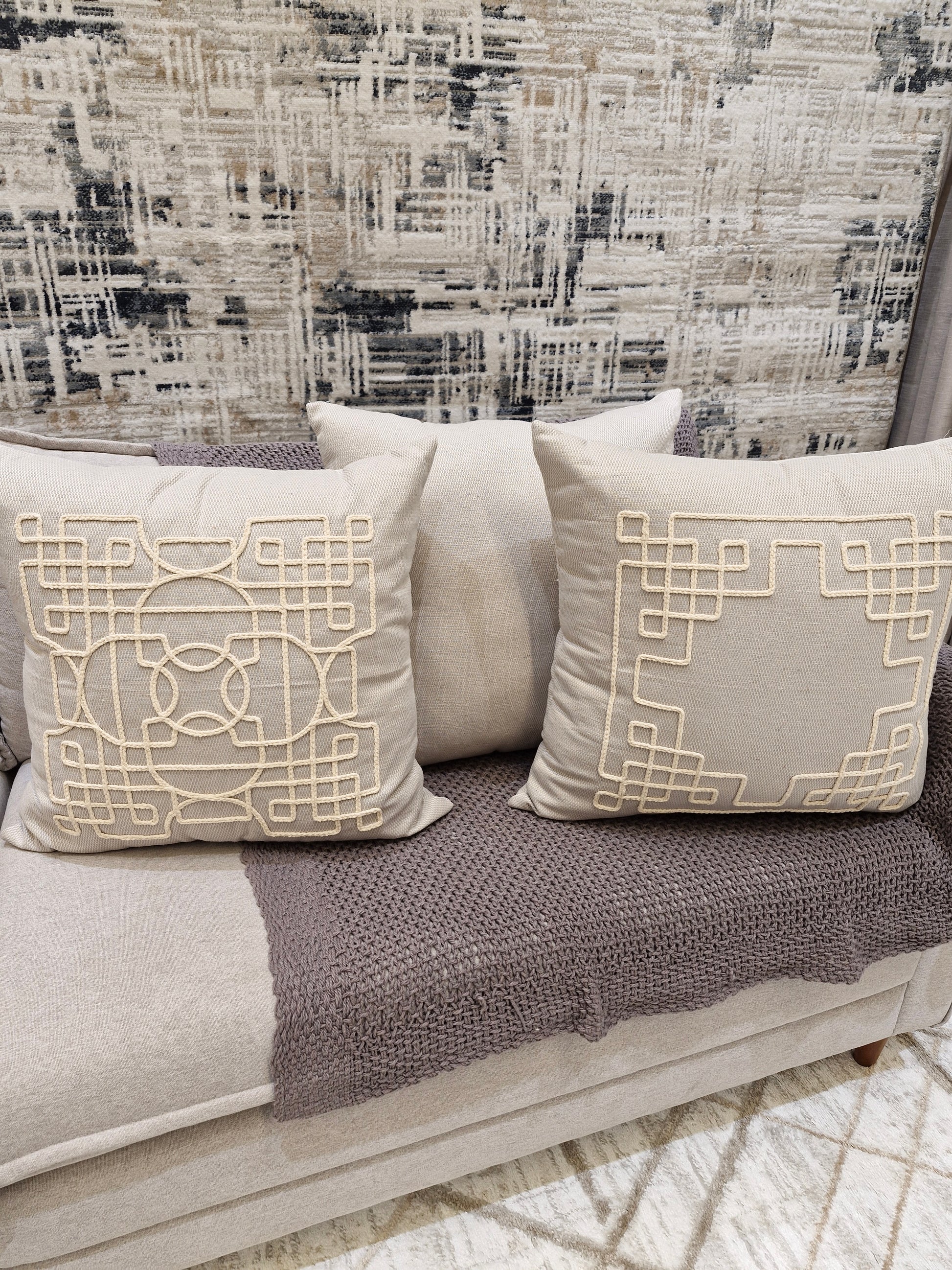 Kit Almofadas Trio Cordão Desenhado Linho Bege 260B| Três Peças