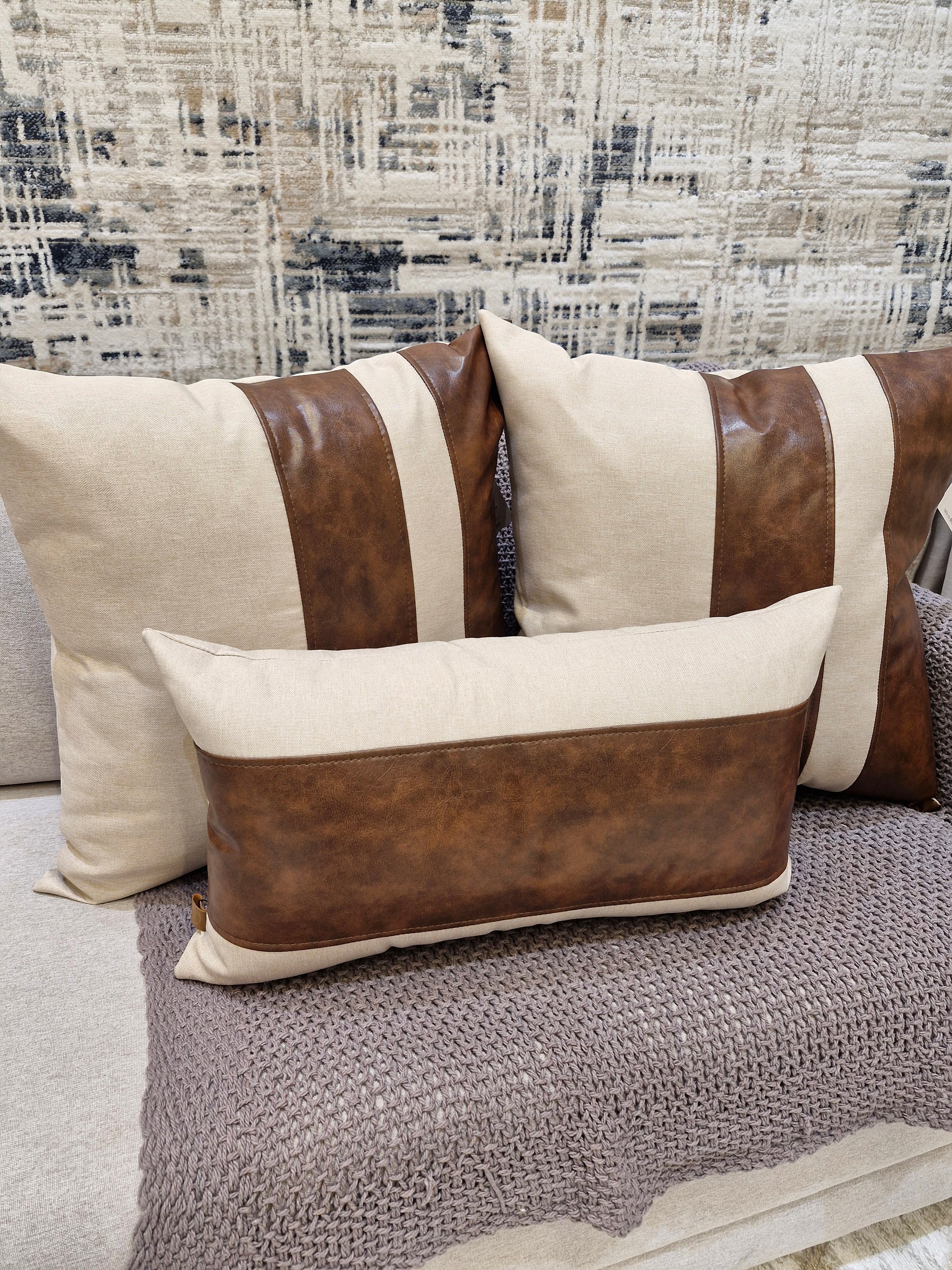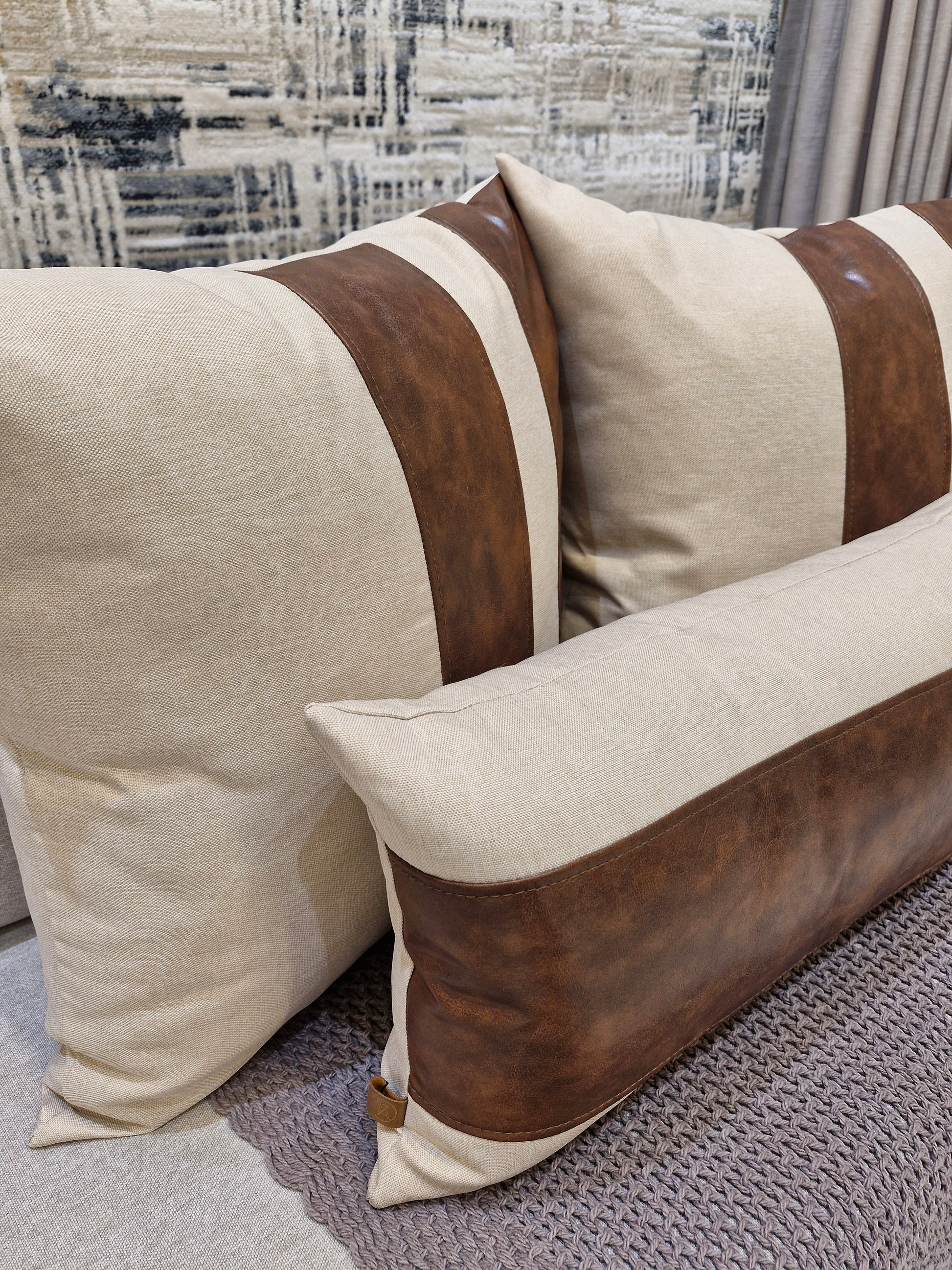 Kit Almofadas Trio Lana em Corino Marrom 380| Três Peças