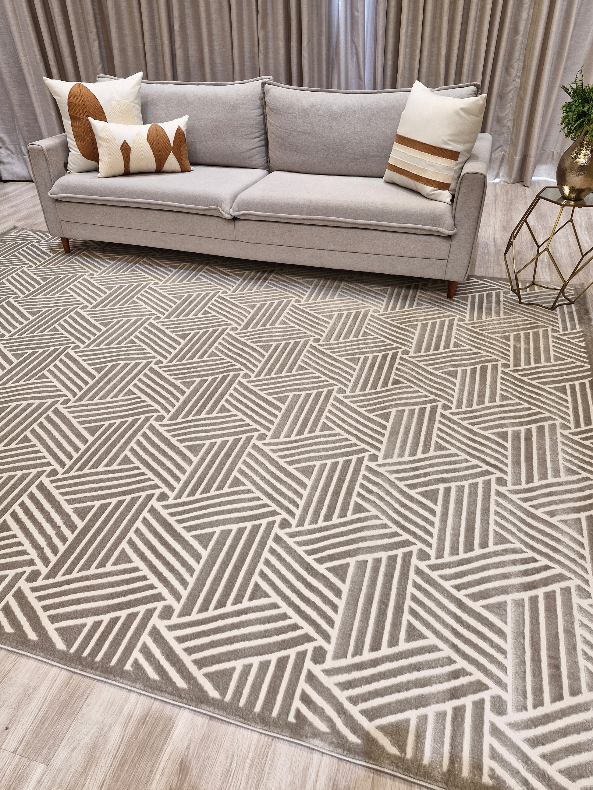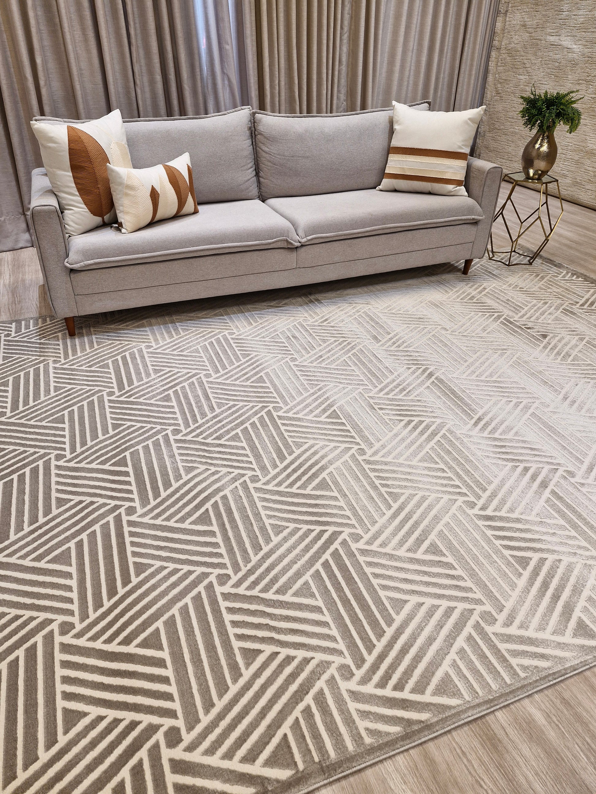 📍 Sala de Estar: O tapete deve avançar 10 a 15 cm sob o sofá para um visual harmonioso.