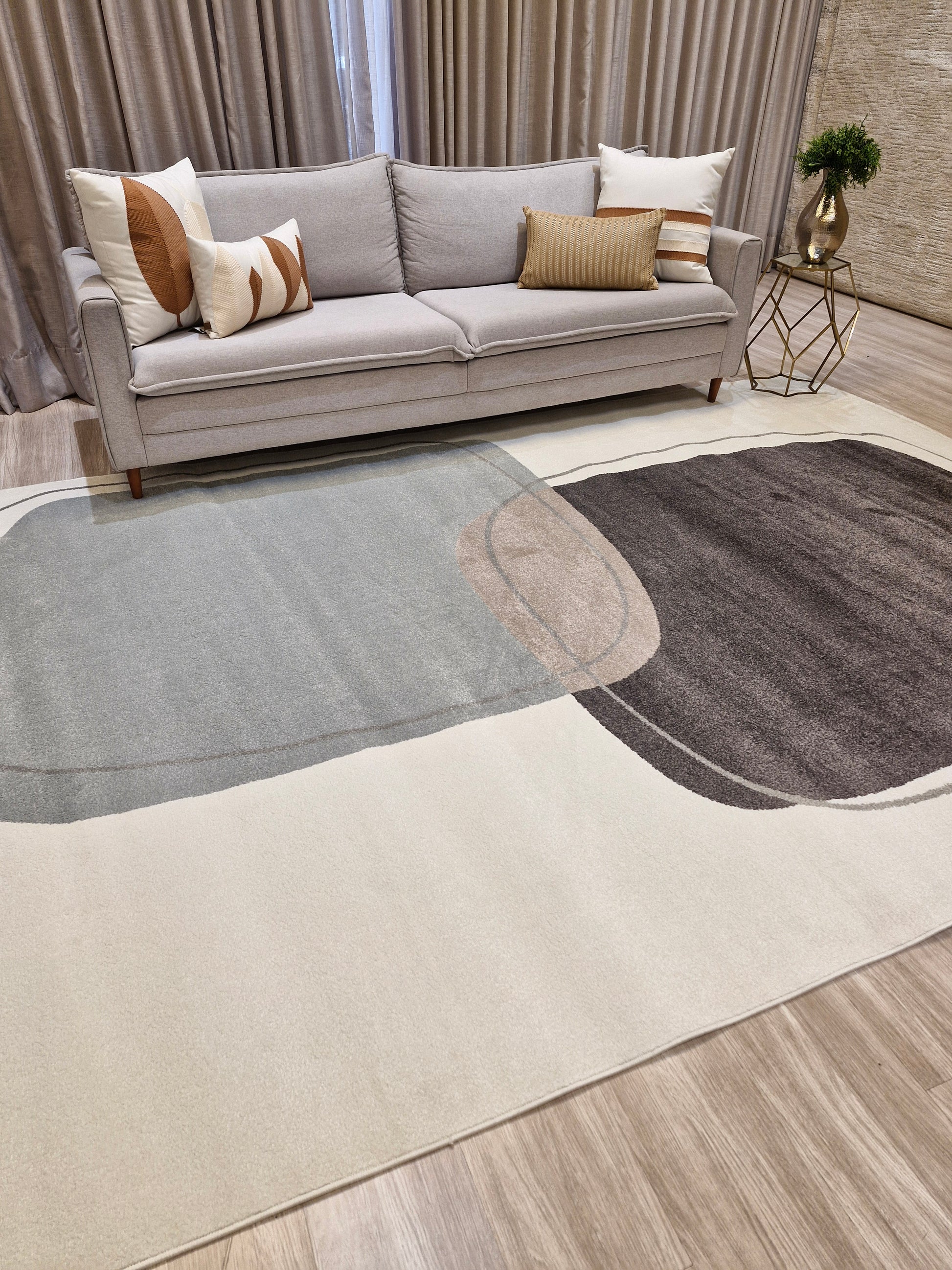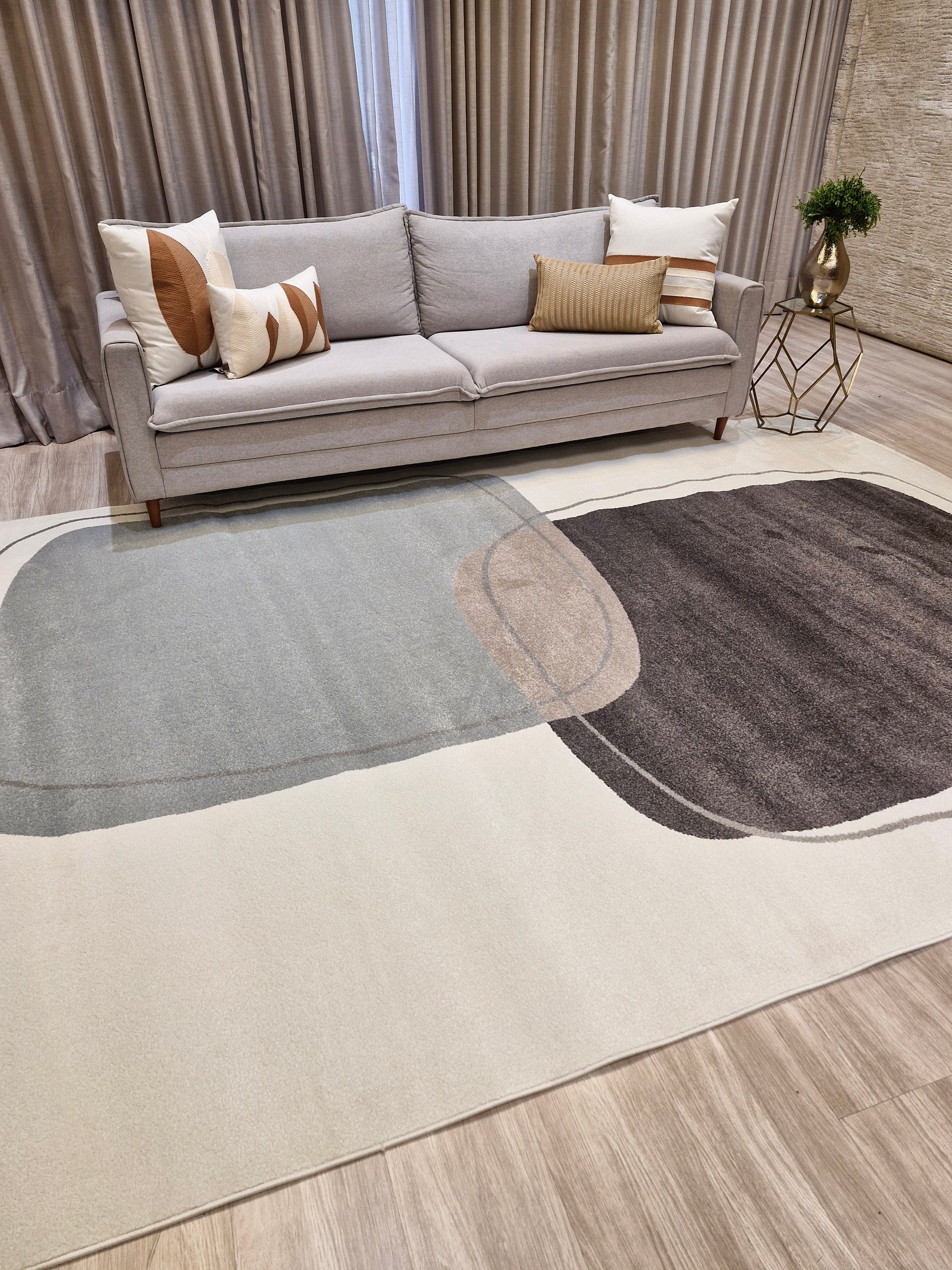 📍 Sala de Estar: O tapete deve avançar 10 a 15 cm sob o sofá para um visual harmonioso.