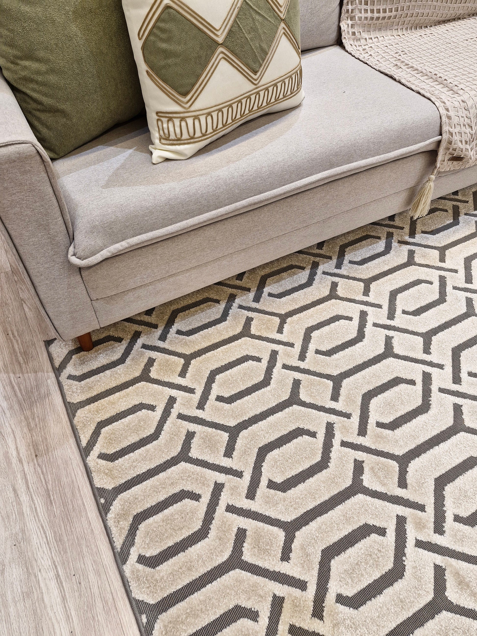 📍 Sala de Estar: O tapete deve avançar de 10 a 15cm sob o sofá, garantindo um visual equilibrado.
