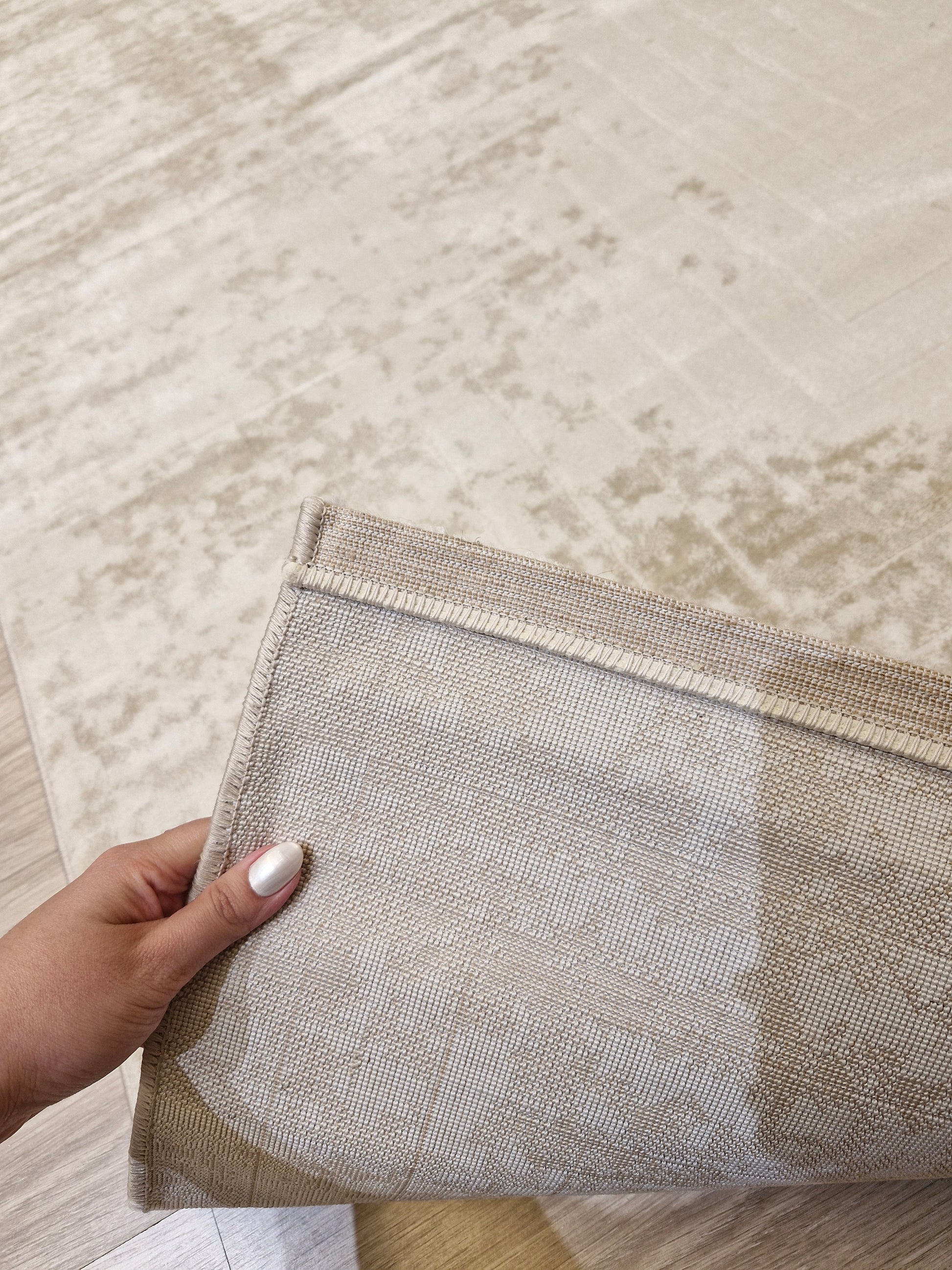 O Tapete Turco em 80% Polipropileno e 20% Poliéster une design contemporâneo e tradição em tapeçaria. Fabricado na Turquia, oferece durabilidade, toque suave e fácil manutenção. Seu padrão estonado em tons neutros garante sofisticação e versatilidade, compondo com elegância salas, quartos e ambientes corporativos.
