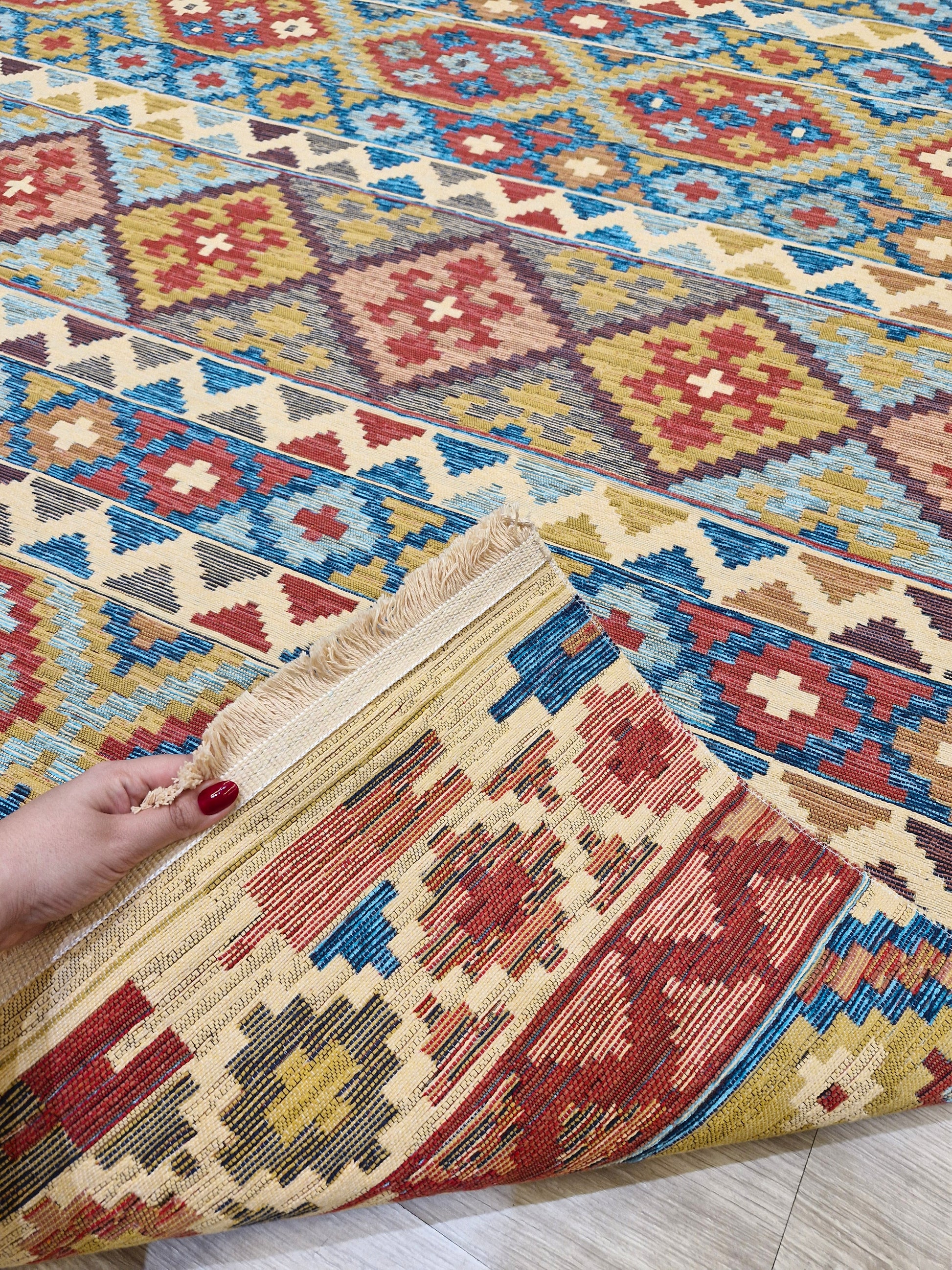 Tapete Turco Kilim Mosaico 1006 - Design Geométrico Tradicional || Reversível