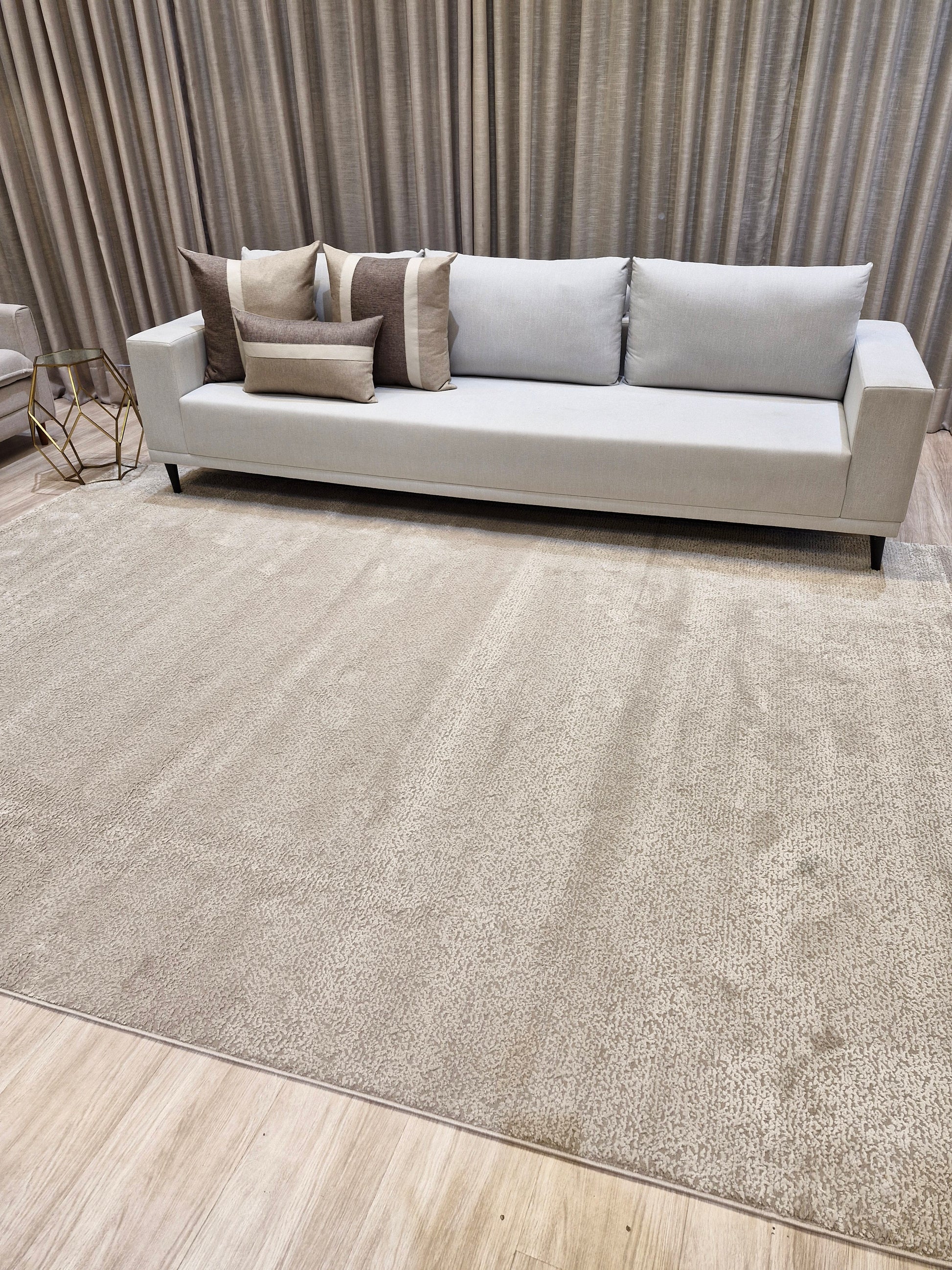 O Tapete Turco em 100% Poliéster une design contemporâneo e tradição em tapeçaria. Fabricado na Turquia, oferece durabilidade, toque suave e fácil manutenção. Seu padrão estonado em tons neutros garante sofisticação e versatilidade, compondo com elegância salas, quartos e ambientes corporativos.