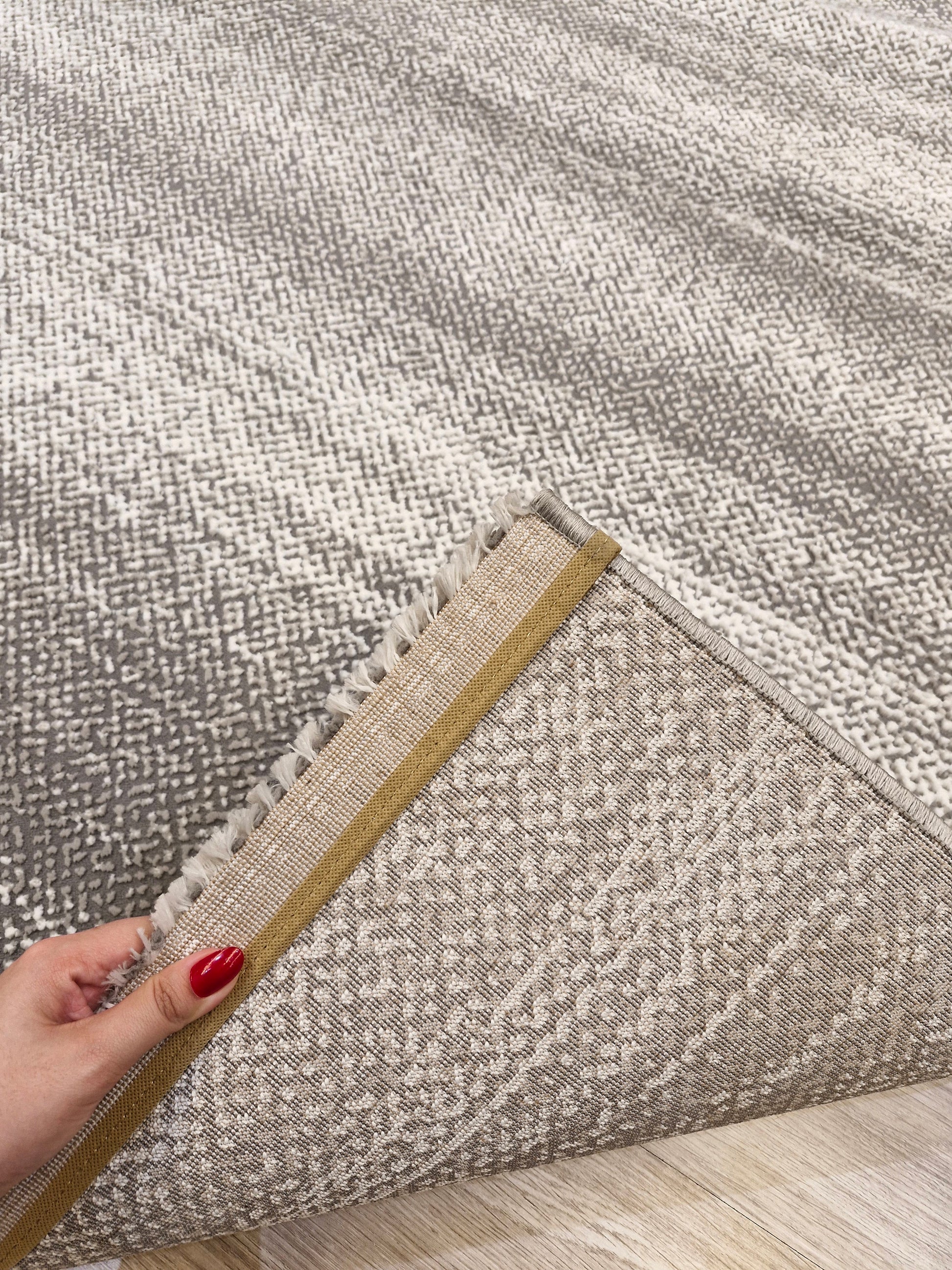 O Tapete Turco em 100% Poliéster une design contemporâneo e tradição em tapeçaria. Fabricado na Turquia, oferece durabilidade, toque suave e fácil manutenção. Seu padrão estonado em tons neutros garante sofisticação e versatilidade, compondo com elegância salas, quartos e ambientes corporativos.