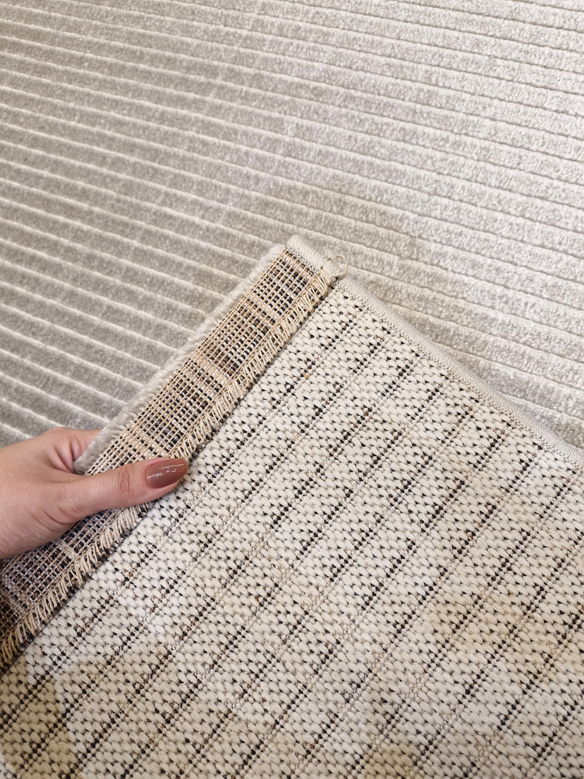 O Tapete em 100% Polipropileno une design contemporâneo e tradição em tapeçaria. Fabricado na Egito, oferece durabilidade, toque suave e fácil manutenção. Seu padrão estonado em tons neutros garante sofisticação e versatilidade, compondo com elegância salas, quartos e ambientes corporativos.